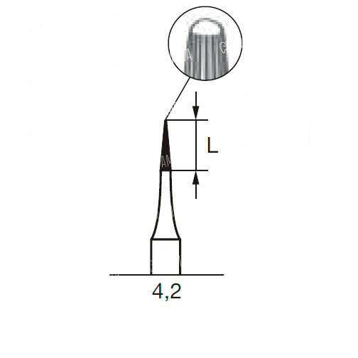 Финишный твердосплавный бор CF 133, конус безопасный конец, D=1.0 мм, L=4.2 мм, FG, белый
