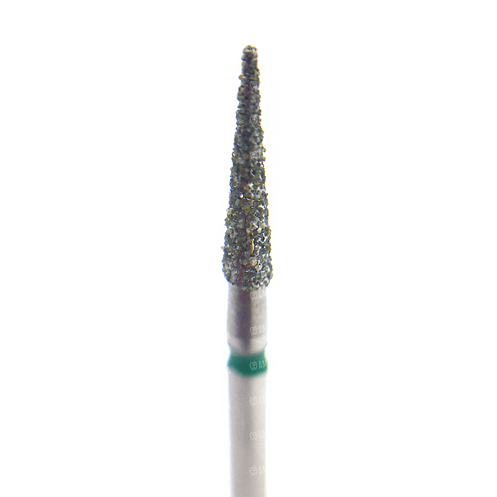 Бор алмазный 858G, конус заостренный, тонкий, D=1.4 мм, L=8.0 мм, FG, зеленый