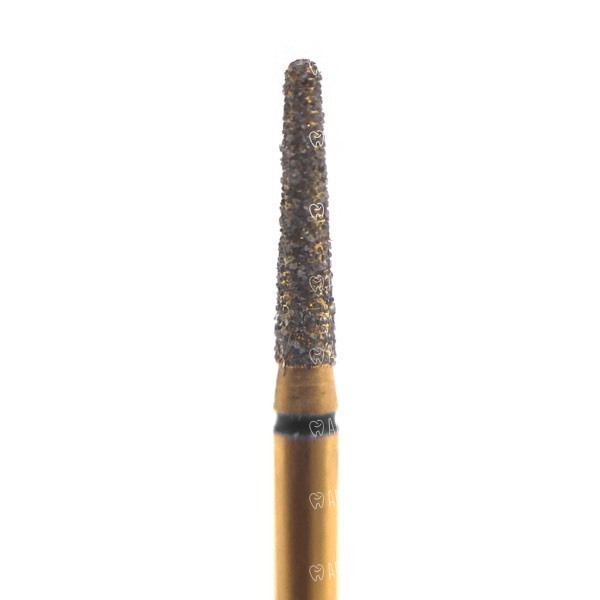 Многослойный алмазный бор G856, конический с закругленным торцом, под турбинный наконечник. Форма алмазных боров идеально подходит для создания закругленных кромок керамических и металлических реставраций.