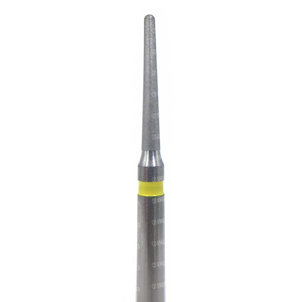 Бор алмазный 856, конус закругленный, D=1.2 мм, L=8.0 мм, FG, желтый