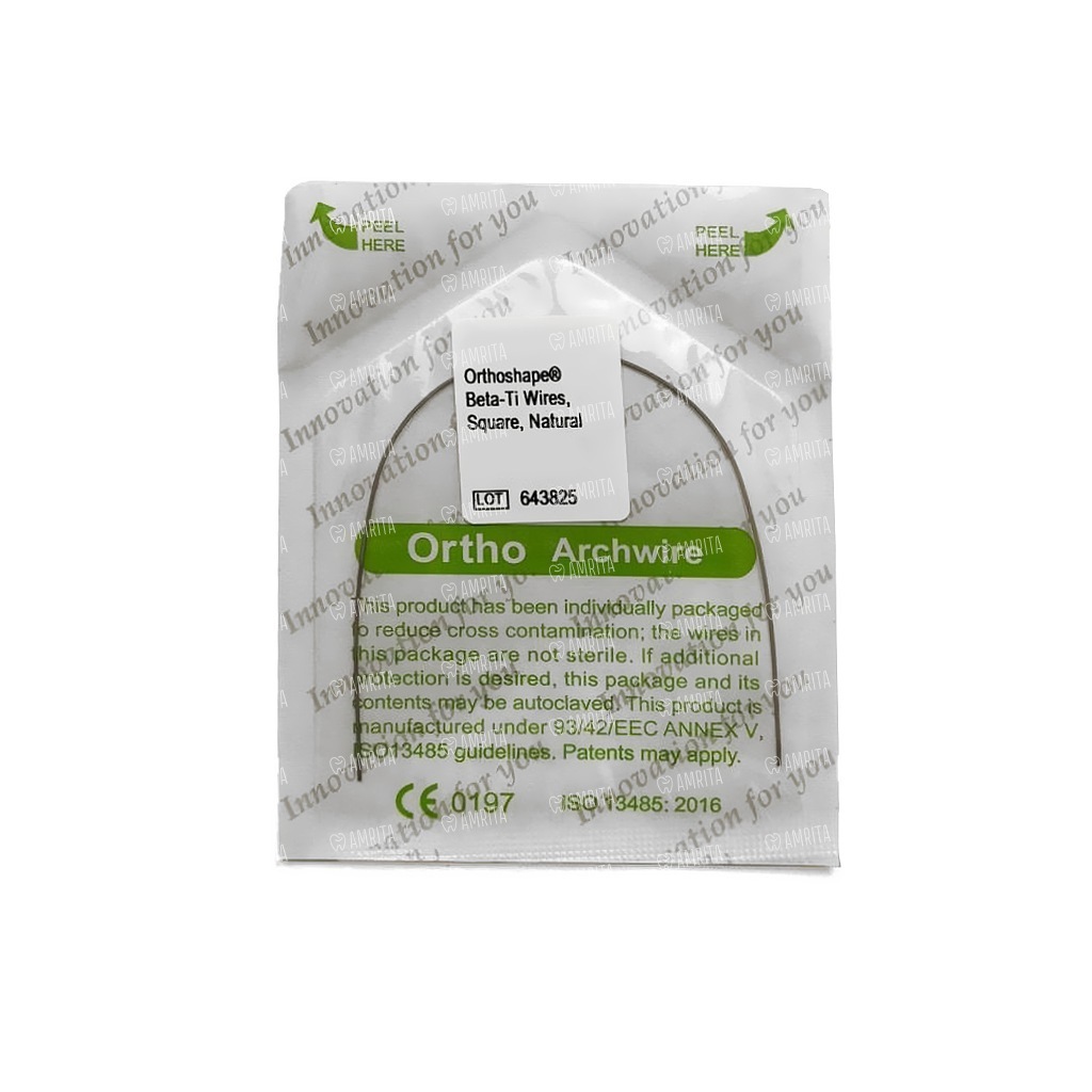 Ортодонтическая дуга Beta-Ti из сплава титана и молибдена, без никеля. Подходит для пациентов с аллергией на никель. Обладает умеренной упругостью и гибкостью, обеспечивает плавное перемещение зубов. Высокая амортизирующая способность и низкая частота разрывов.
