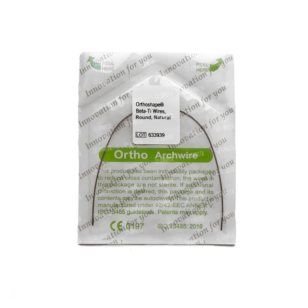 Ортодонтическая дуга Beta-Ti из сплава титана и молибдена, без никеля. Подходит для пациентов с аллергией на никель. Обладает умеренной упругостью и гибкостью, обеспечивает плавное перемещение зубов. Высокая амортизирующая способность и низкая частота разрывов.