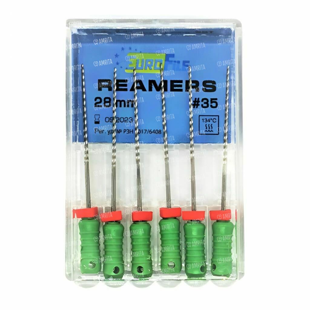 Дрильборы ручные Eurofile Reamers, для прохождения и расширения корневых каналов, 28 мм, №35, сталь, 6 шт