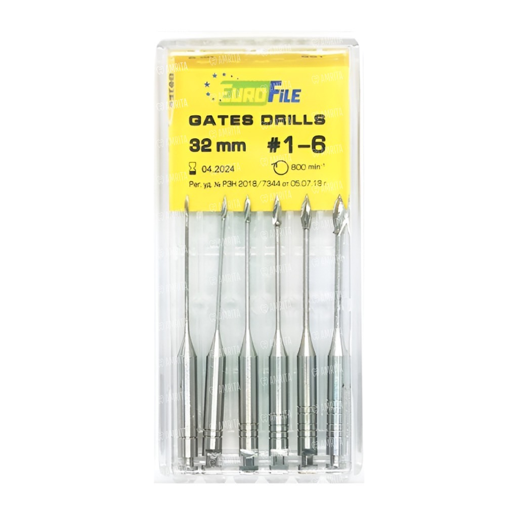 Дрильборы машинные Eurofile Gates Drills, для расширения коронковой трети канала, 32 мм, размер 1, сталь, 6 шт