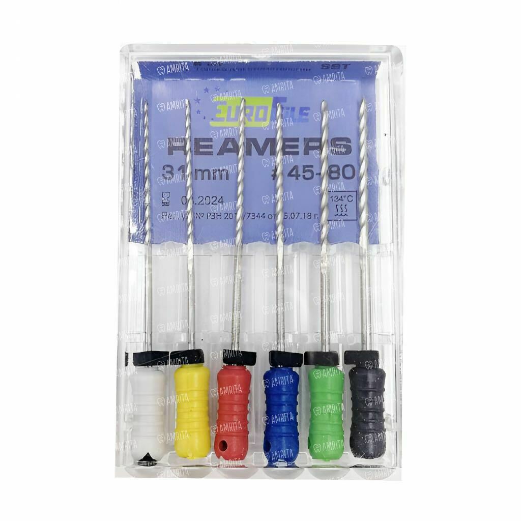Дрильборы ручные Eurofile Reamers, для прохождения и расширения корневых каналов, 31 мм, №45-80, сталь, 6 шт