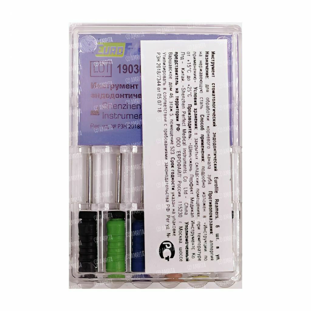 Дрильборы ручные Eurofile Reamers, для прохождения и расширения корневых каналов, 31 мм, №06, сталь, 6 шт