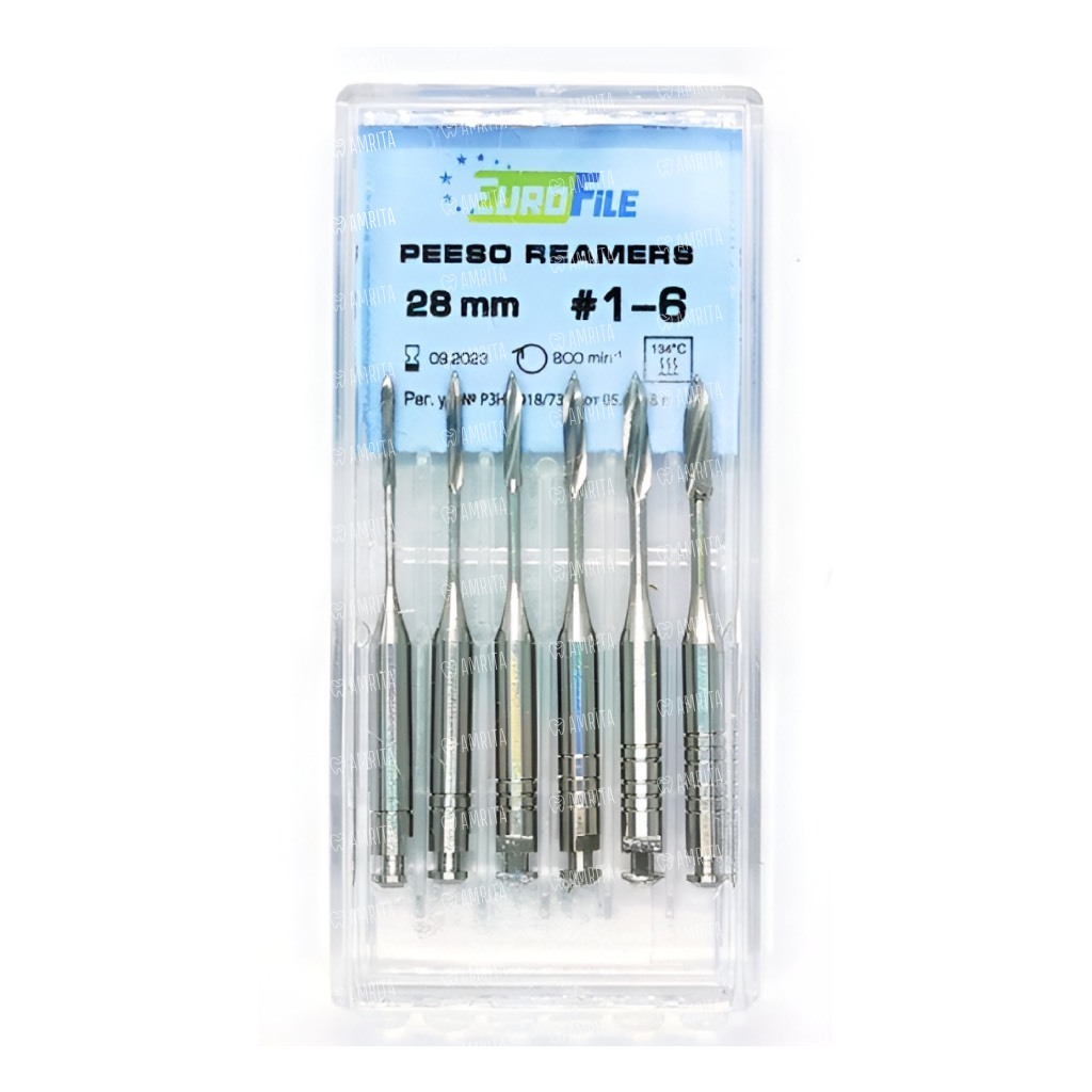 Дрильборы машинные Eurofile Peeso Reamer, для работы с каналом после вскрытия полости, 28 мм, размер 1-6, сталь, 6 шт