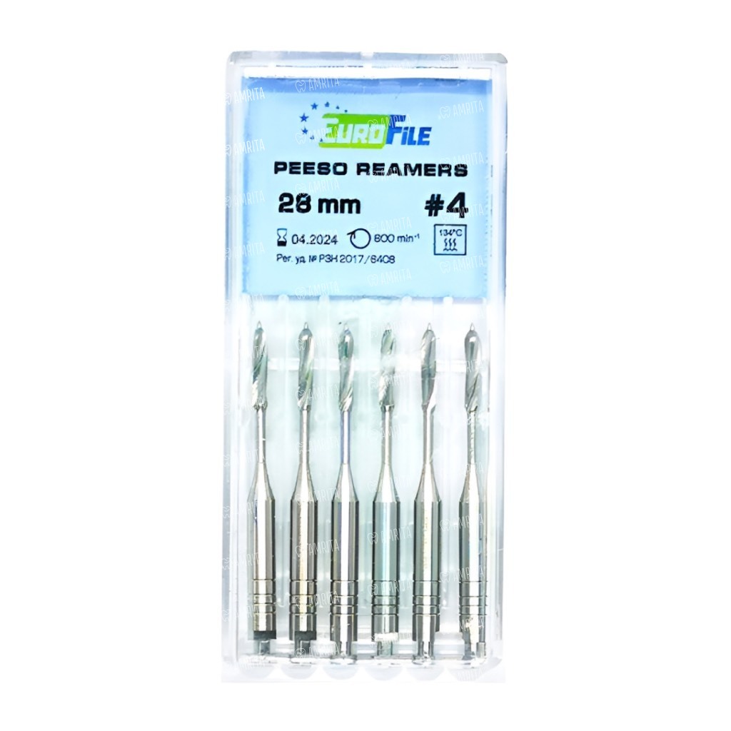 Дрильборы машинные Eurofile Peeso Reamer, для работы с каналом после вскрытия полости, 28 мм, размер 4, сталь, 6 шт
