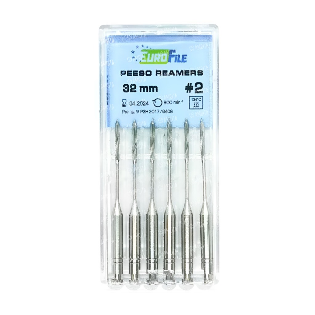 Машинный дрильбор Peeso Reamer от Eurofile — это специализированный эндодонтический инструмент, предназначенный для высокоточного и безопасного препарирования прямой части корневого канала. Он является золотым стандартом при подготовке канала под установку штифтовых конструкций, обеспечивая идеальную основу для последующей реставрации.