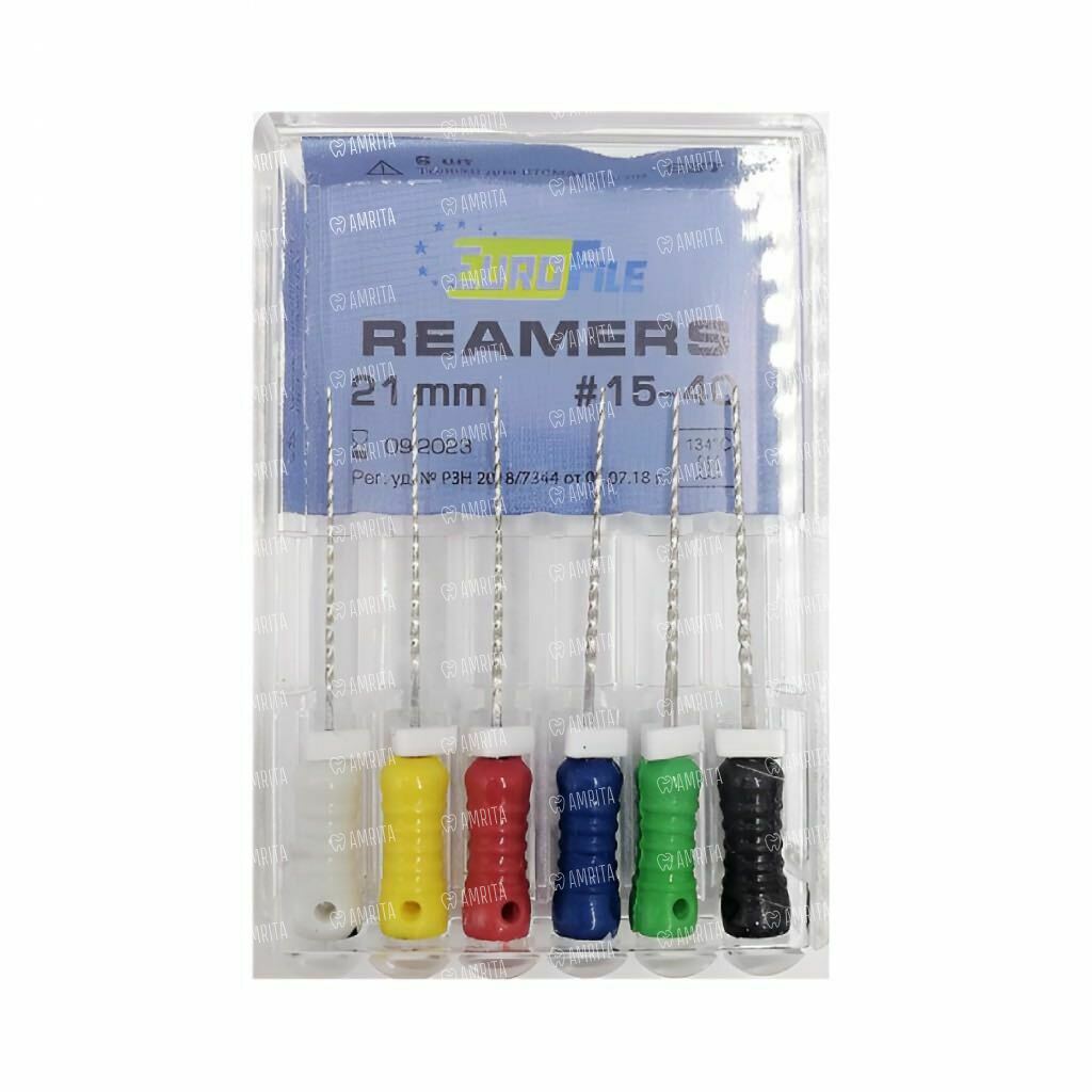 Дрильборы ручные Eurofile Reamers, для прохождения и расширения корневых каналов, 21 мм, №15-40, сталь, 6 шт