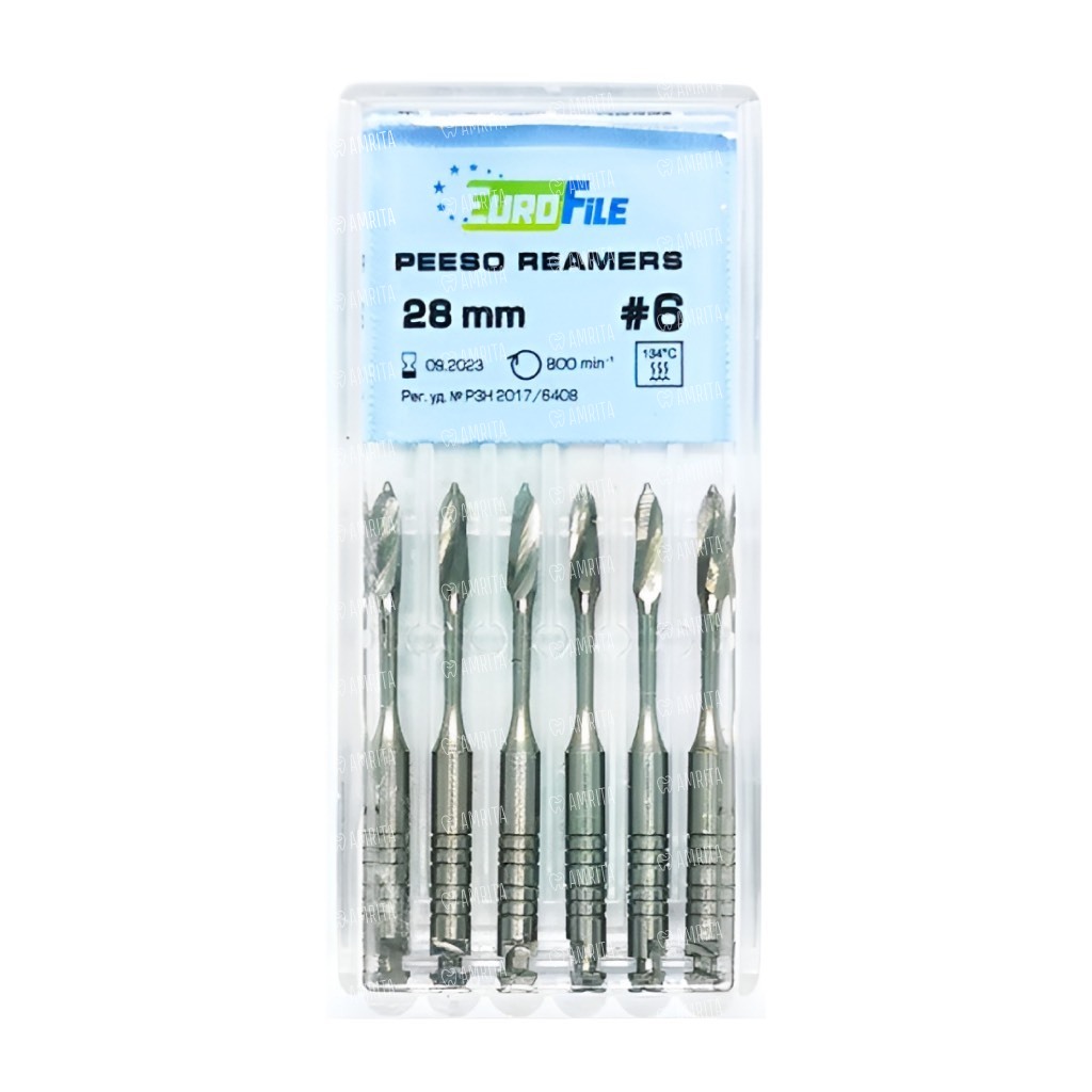 Дрильборы машинные Eurofile Peeso Reamer, для работы с каналом после вскрытия полости, 28 мм, размер 6, сталь, 6 шт