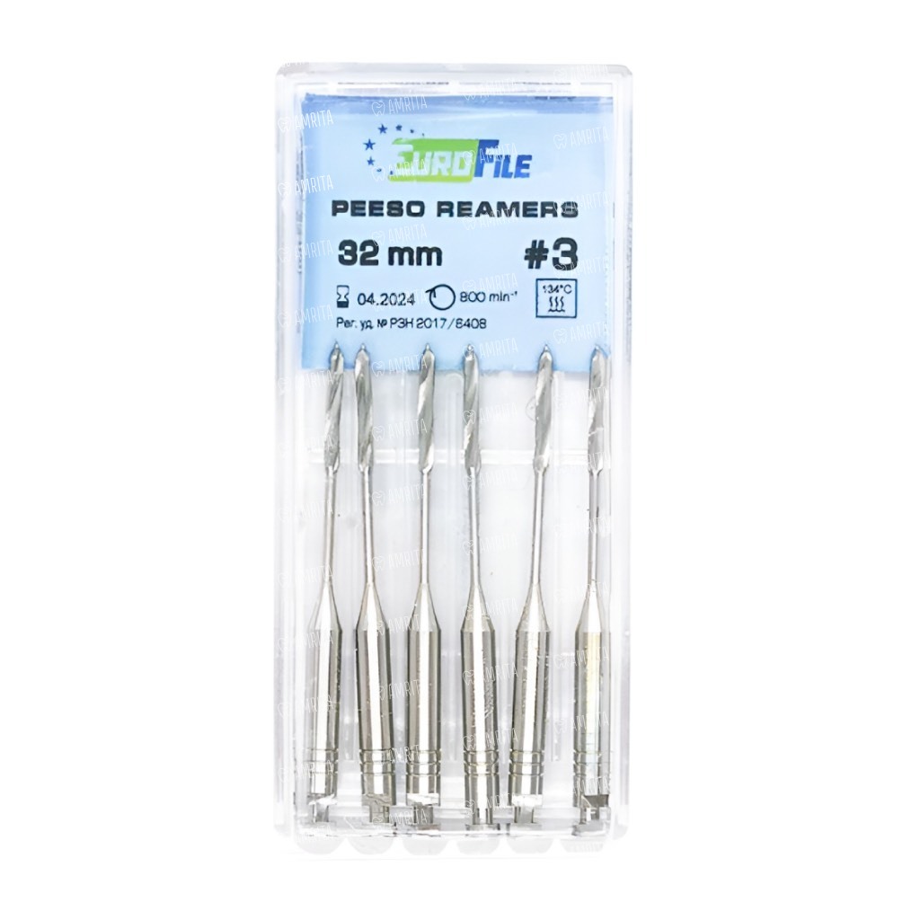 Машинный дрильбор Peeso Reamer от Eurofile — это специализированный эндодонтический инструмент, предназначенный для высокоточного и безопасного препарирования прямой части корневого канала. Он является золотым стандартом при подготовке канала под установку штифтовых конструкций, обеспечивая идеальную основу для последующей реставрации.