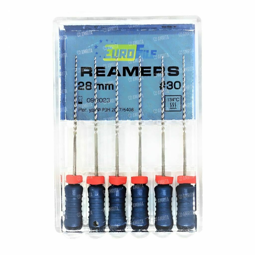 Дрильборы ручные Eurofile Reamers, для прохождения и расширения корневых каналов, 28 мм, №30, сталь, 6 шт