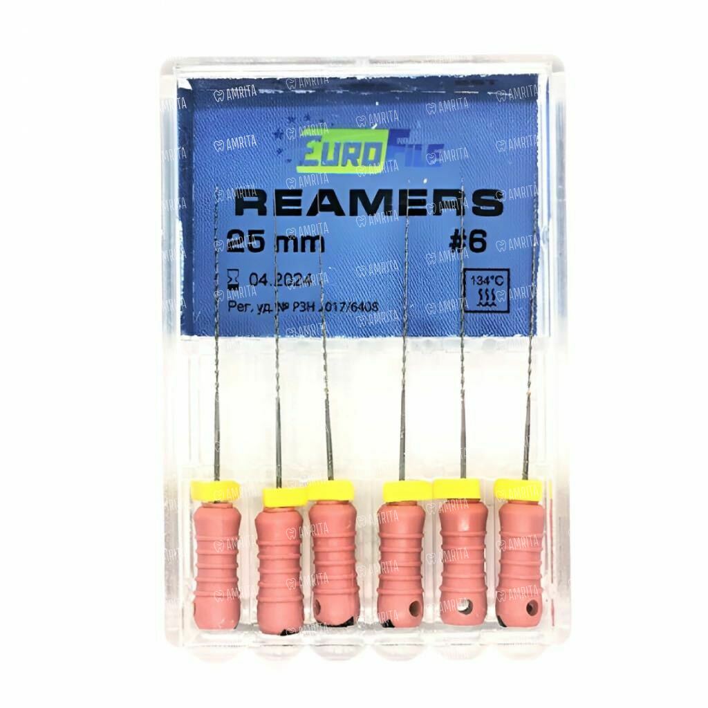 Дрильборы ручные Eurofile Reamers, для прохождения и расширения корневых каналов, 25 мм, №06, сталь, 6 шт