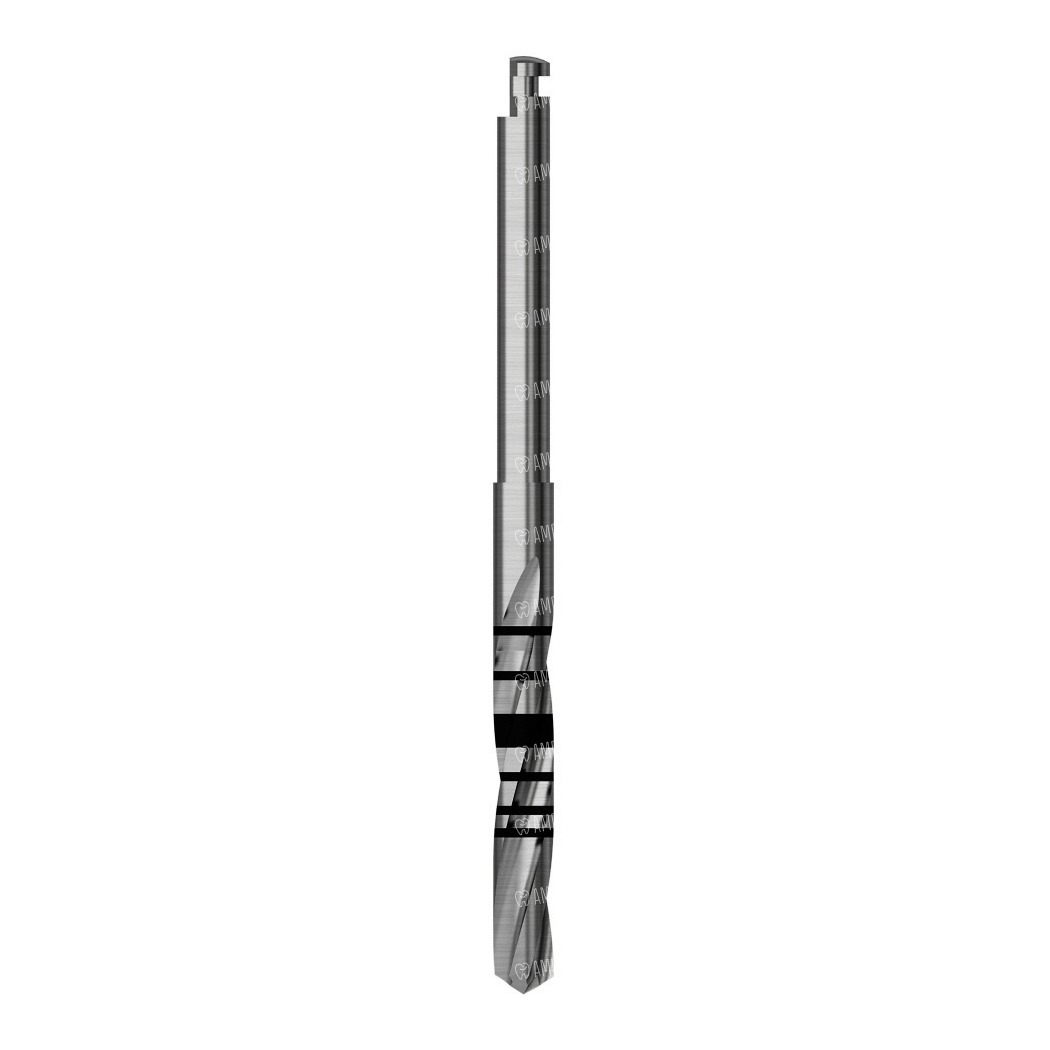 Спиральное сверло из набора MS KIT* используется для прохождения нужной глубины при подготовке ложа под имплантат. Лазерная маркировка инструмента указывает длину погружения сверла в кость.