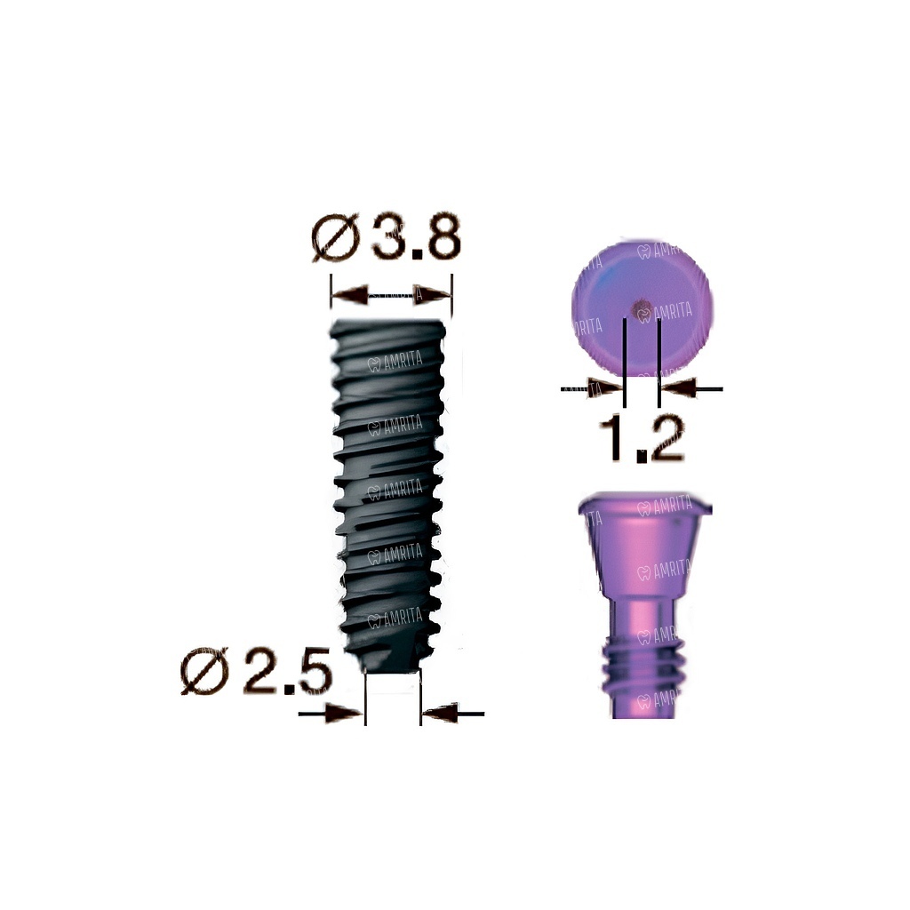 - мини-диаметр 3.5 мм позволяет устанавливать имплантат в узких межзубных промежутках без повреждения соседних зубов;