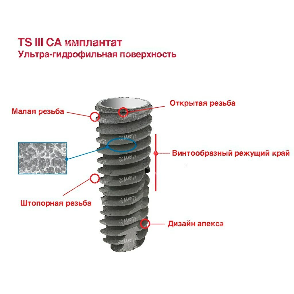 - Ускоренная остеоинтеграция благодаря ультра-гидрофильной поверхности;