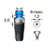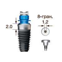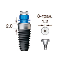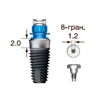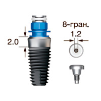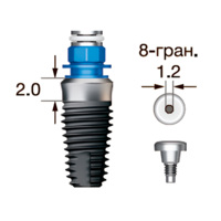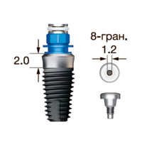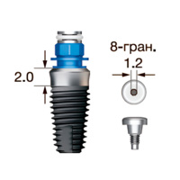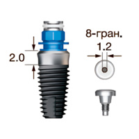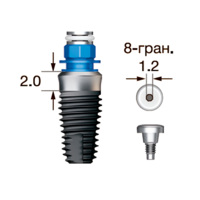 Имплантат OSSTEM SS III SA Wide (G/H=2.0), 8-гранник D=2.5, с полированной шейкой, D=7.0 мм, L=8.5 мм, с адаптером и винт-заглушкой D=1.2 мм