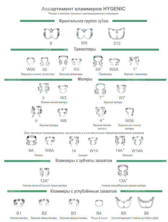 HYGENIC DENTAL DAM CLAMPS SET - набор кламмеров без крыльев, 9 шт