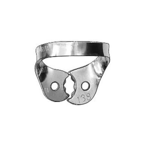 — № 13A, асимметричный кламп с горизонтальными зазубренными «челюстями» (tiger-тип), правосторонний, для верхних моляров с треугольной формой коронки, наиболее часто используется для наложения на верхние моляры, возможно наложение на третьи верхние моляры