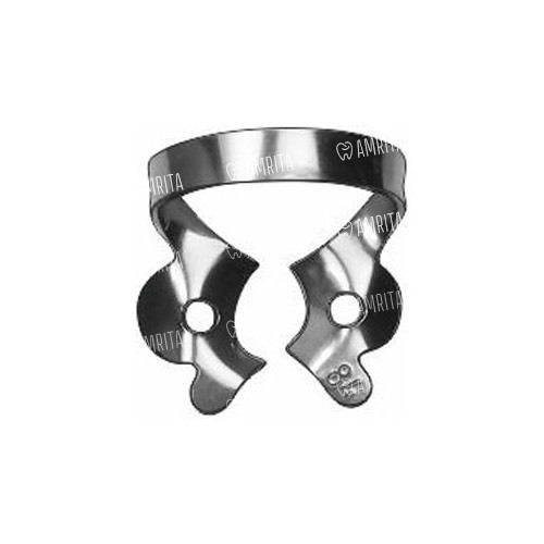 — №W56, кламп с жесткими изогнутыми «челюстями» (с глубоким захватом), без крыльев, для нижних моляров с большим размером коронки, используется в том числе при сильном разрушении коронки зуба