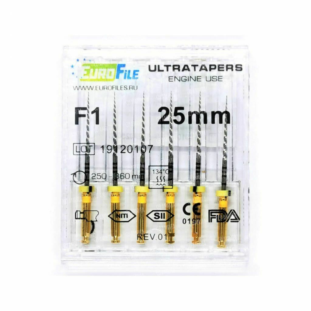 Файлы машинные Eurofile Ultratapers, для препарирования каналов, 25 мм, №F1, никель-титан, 6 шт