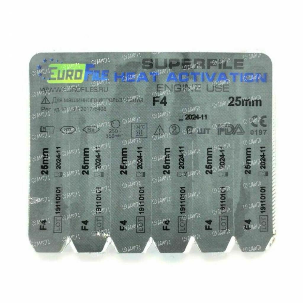 Файлы машинные Eurofile SuperFile Heat Activation, для препарирования каналов, 25 мм, №F4, никель-титан, 6 шт