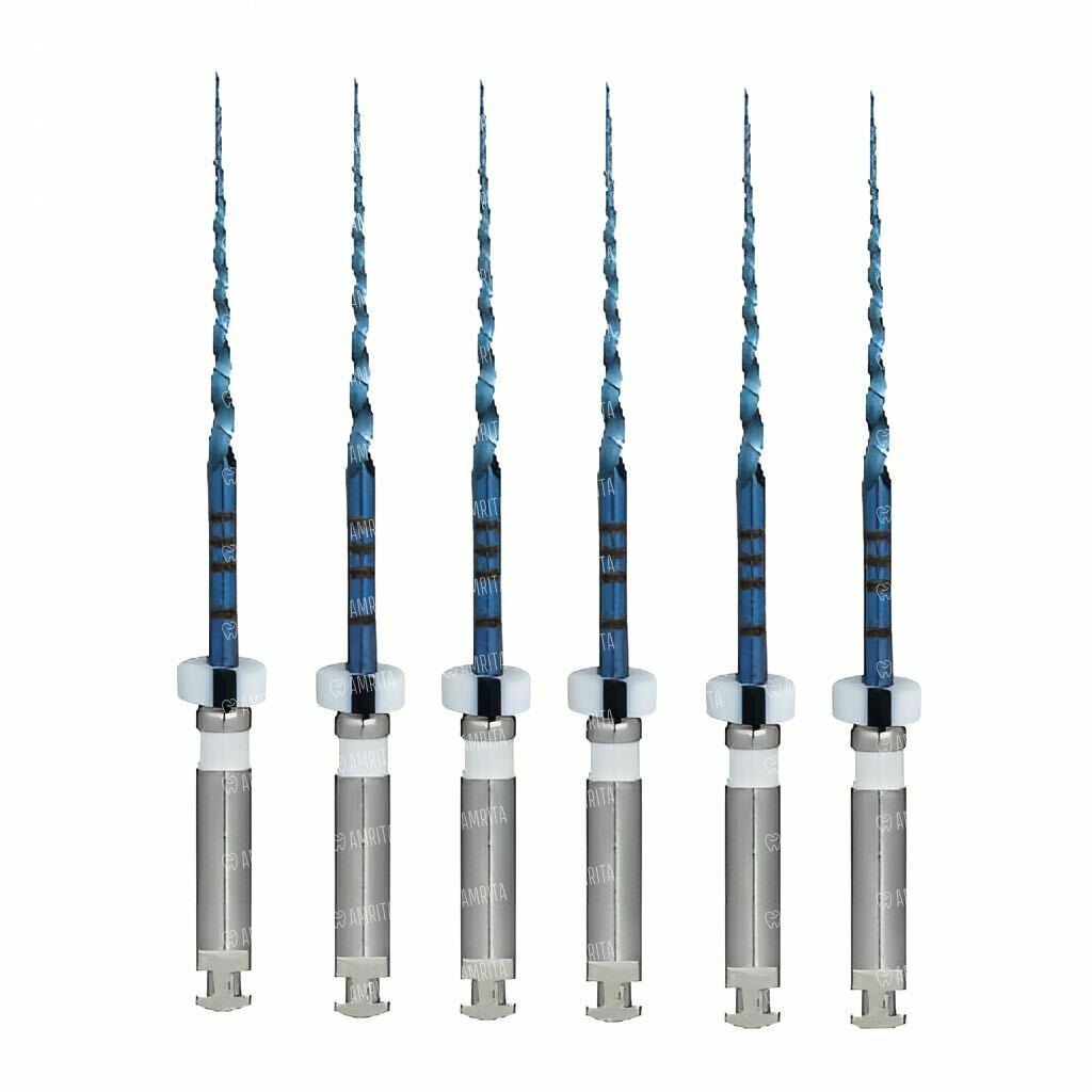 - Уникальный дизайн для предотвращения заклинивания. Выпуклое трехгранное поперечное сечение и изменяющийся угол и шаг спирали по всей длине инструмента значительно снижают торсионную нагрузку и предотвращают эффект «вкручивания» файла в канал, обеспечивая полный контроль над препарированием.