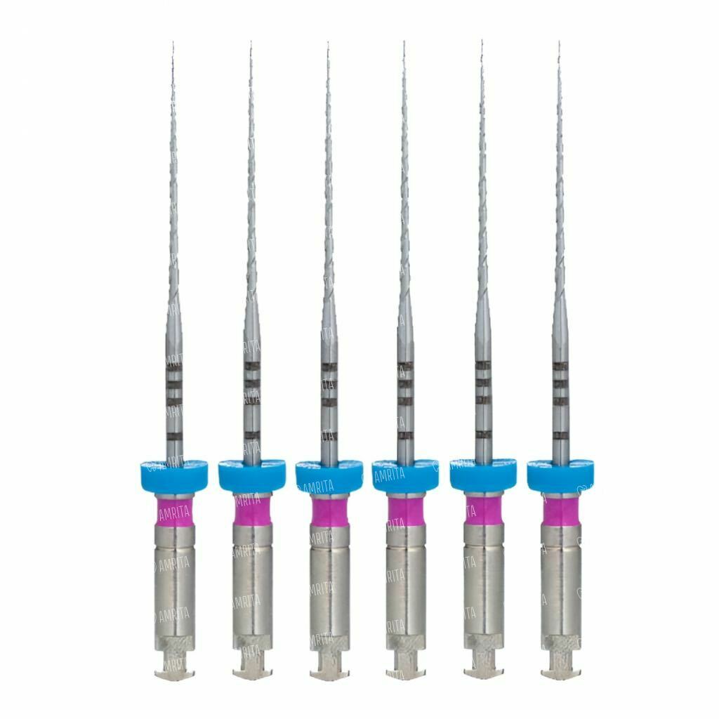 - Высокая гибкость и прочность. Изготовленные из высококачественного Ni-Ti сплава (стандарт Silver), файлы обладают превосходной гибкостью для безопасного прохождения искривленных каналов и высокой прочностью на излом.