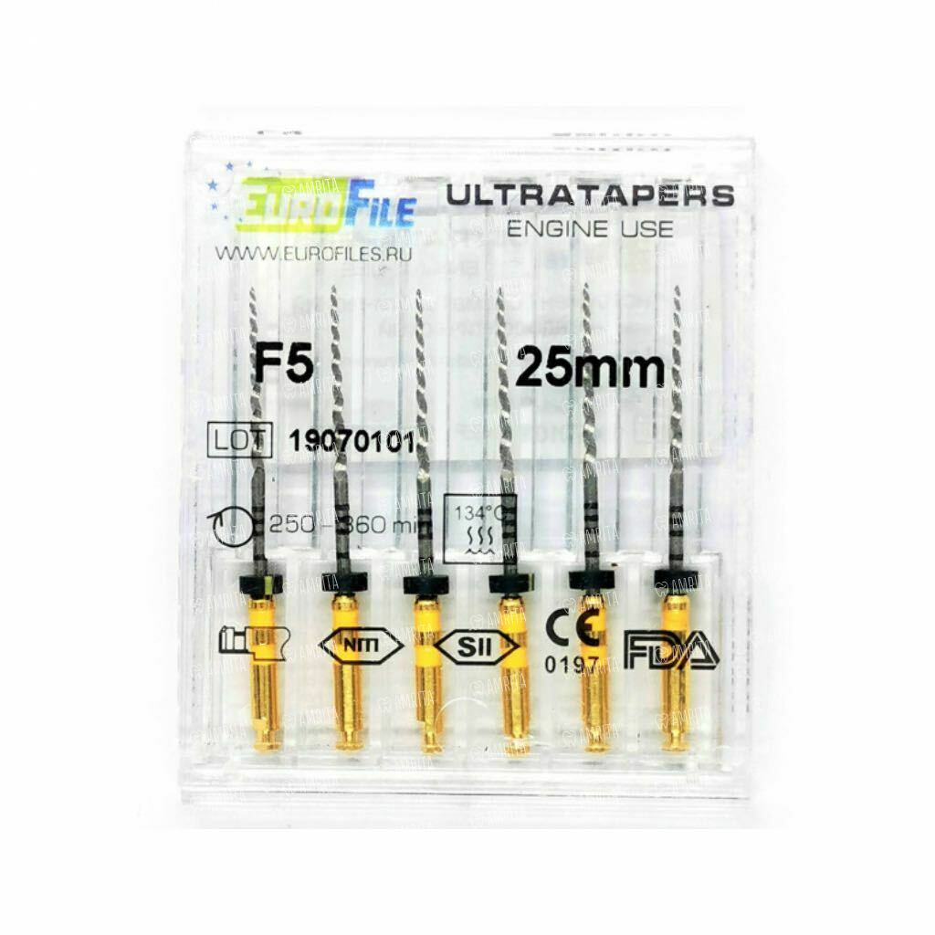 Файлы машинные Eurofile Ultratapers, для препарирования каналов, 25 мм, №F5, никель-титан, 6 шт
