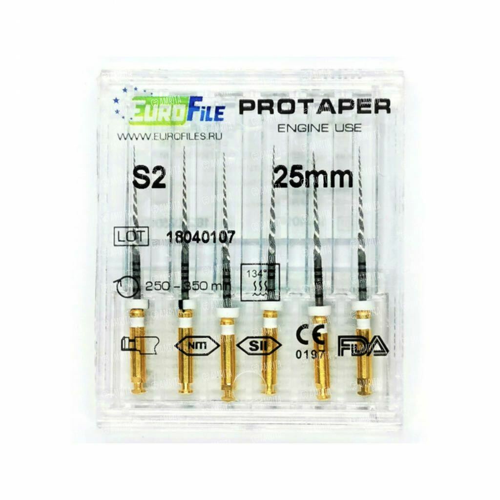 Файлы машинные Eurofile Ultratapers, для препарирования каналов, 25 мм, №S2, никель-титан, 6 шт