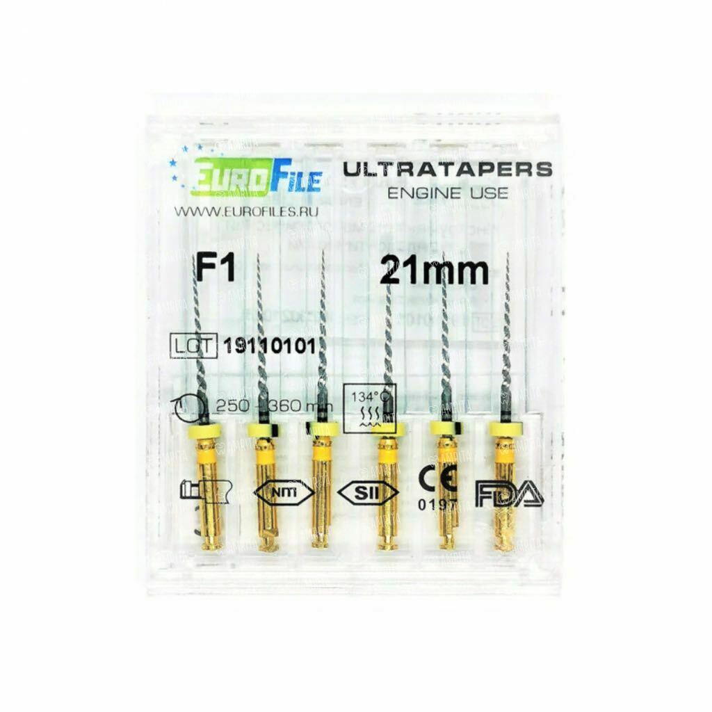 Файлы машинные Eurofile Ultratapers, для препарирования каналов, 21 мм, №F1, никель-титан, 6 шт