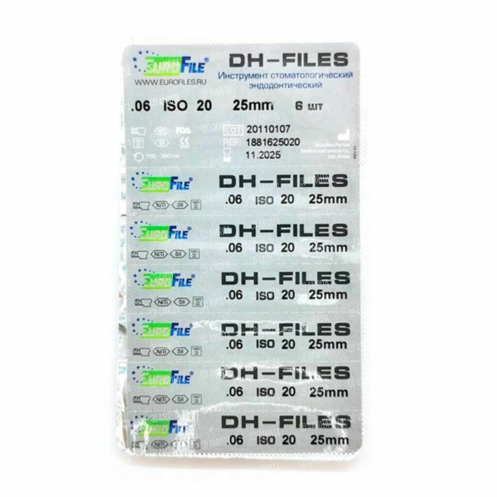 Файлы машинные Eurofile DH-Files, универсальный, 25 мм, №20/.06, никель-титан, 6 шт