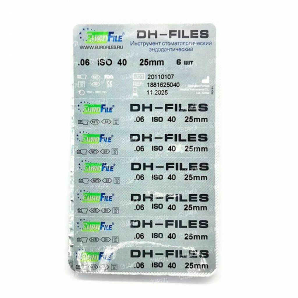 Файлы машинные Eurofile DH-Files, универсальный, 25 мм, №40/.06, никель-титан, 6 шт