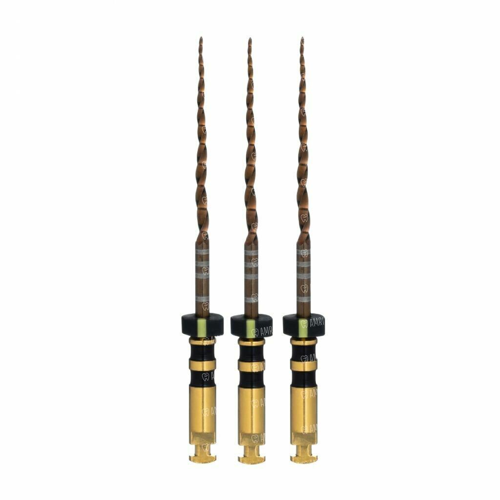 - «Золотой стандарт» гибкости и прочности. Специальная «Gold» термообработка придает файлам повышенную гибкость и устойчивость к циклической усталости. Это позволяет инструменту безопасно проходить даже сложные изгибы, в то время как уникальное сечение увеличивает прочность его сердцевины.