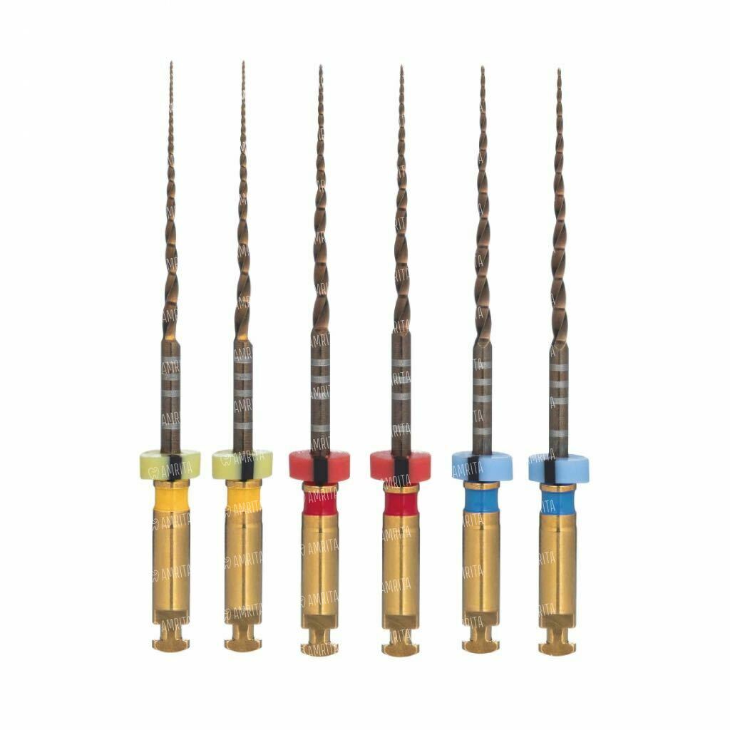- «Золотой стандарт» гибкости и прочности. Специальная «Gold» термообработка придает файлам повышенную гибкость и устойчивость к циклической усталости. Это позволяет инструменту безопасно проходить даже сложные изгибы, в то время как уникальное сечение увеличивает прочность его сердцевины.