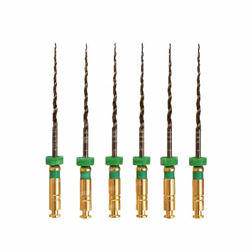 - «Золотой стандарт» гибкости и прочности. Специальная «Gold» термообработка придает файлам уникальное сочетание повышенной гибкости для безопасного прохождения изгибов и высокой прочности режущих граней для эффективного препарирования. Это также значительно повышает устойчивость к циклической усталости, снижая риск поломки.