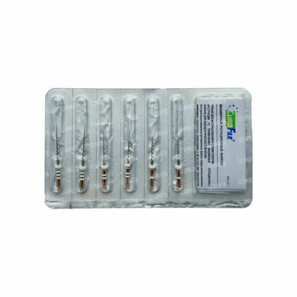 Файлы машинные Eurofile Ultratapers, для повторного лечения, 16-22 мм, набор №D1-D3, никель-титан, 6 шт