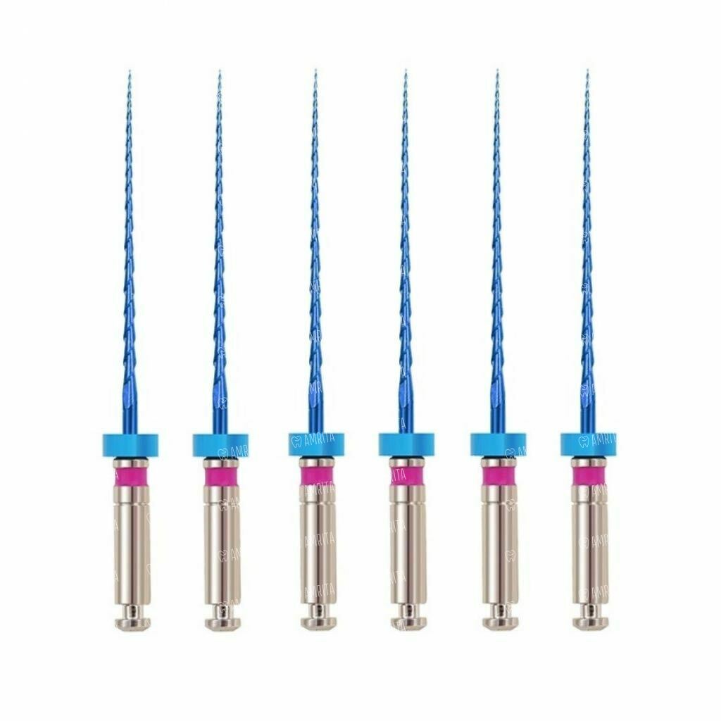 Файлы машинные Eurofile MultiTaper Blue, стерильный, для препарирования искривленных каналов, 25 мм (21 мм), №20/.04, никель-титан, 6 шт