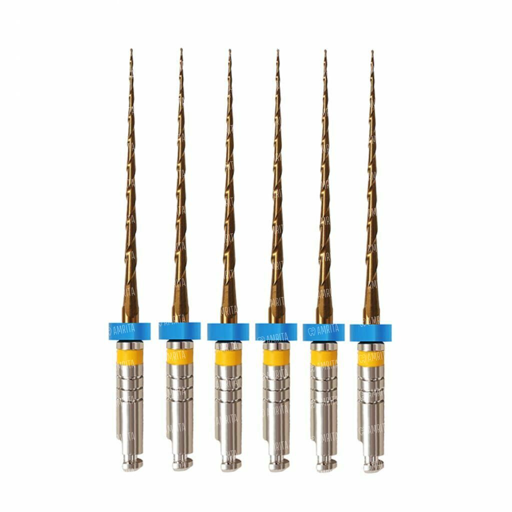 - «Золотая» технология для идеального баланса. Специальная термическая обработка придает файлам уникальное сочетание повышенной гибкости для безопасного прохождения изгибов и высокой прочности режущих граней для эффективного препарирования. Это также значительно повышает устойчивость к циклической усталости, снижая риск поломки.