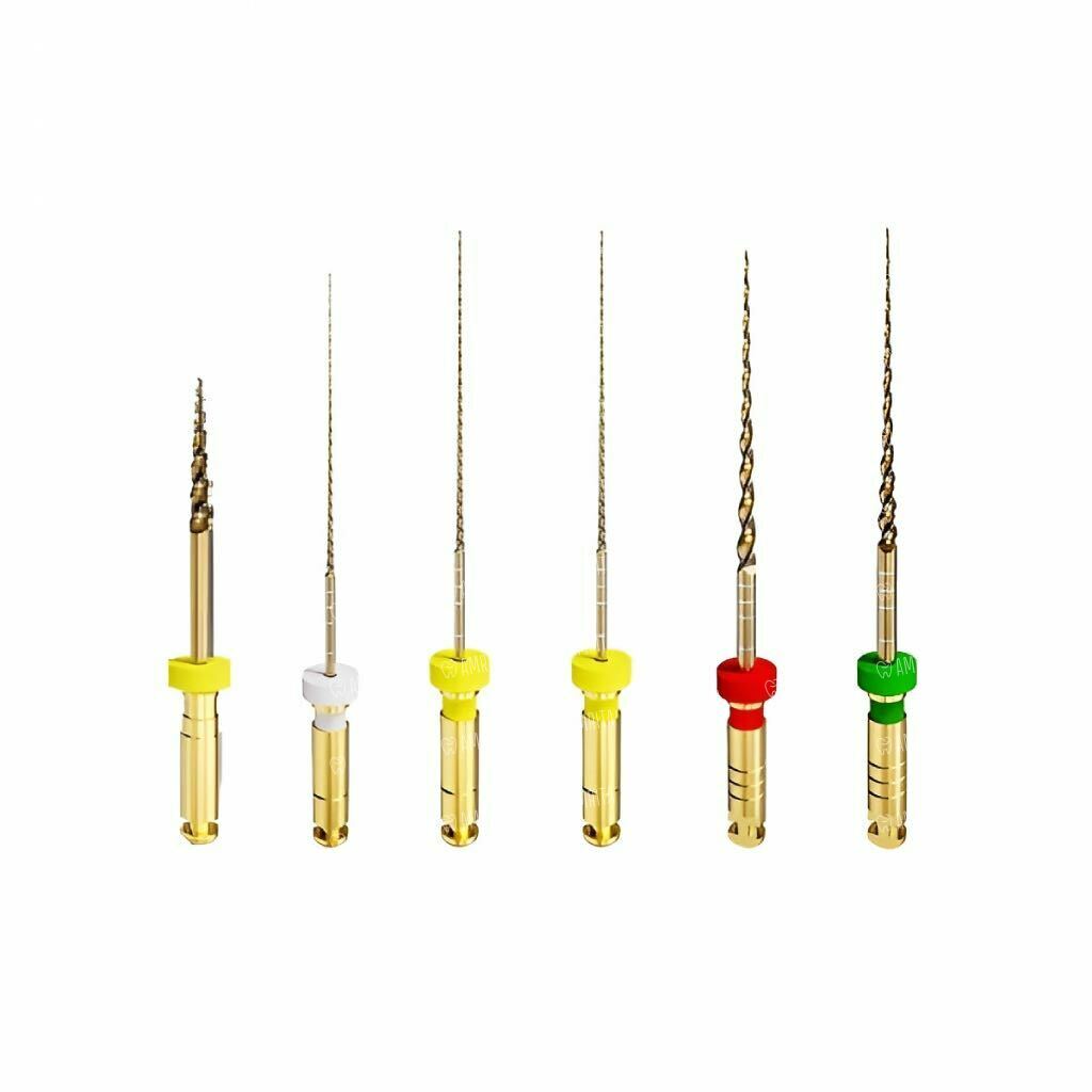Файлы машинные Eurofile MG3 Gold, стерильный, для прохождения и очищения каналов, 25 мм, набор (17/.12, 16/.02, 19/.02, 20/.04, 25/.06, 35/.04), никель-титан, 6 шт