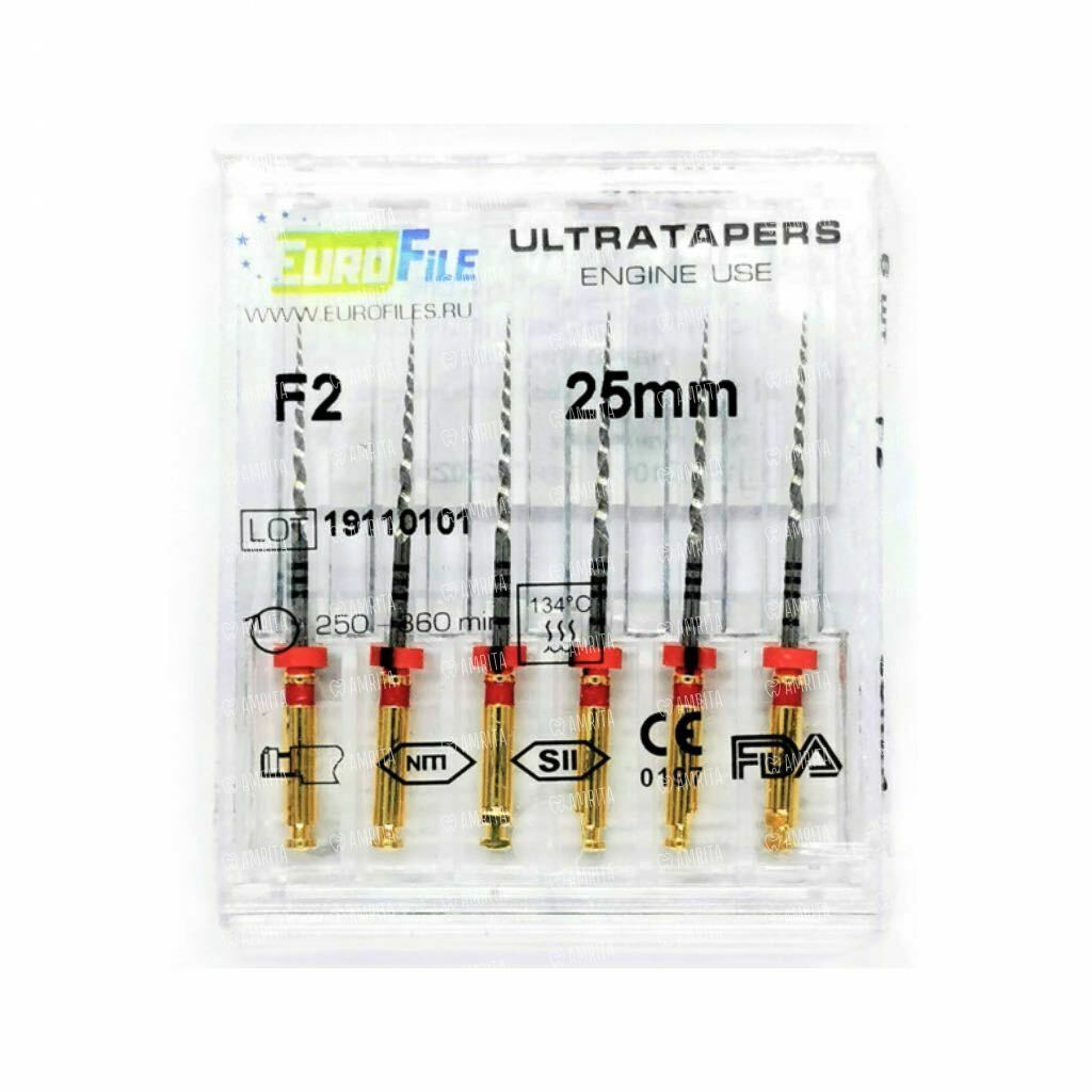 Файлы машинные Eurofile Ultratapers, для препарирования каналов, 25 мм, №F2, никель-титан, 6 шт