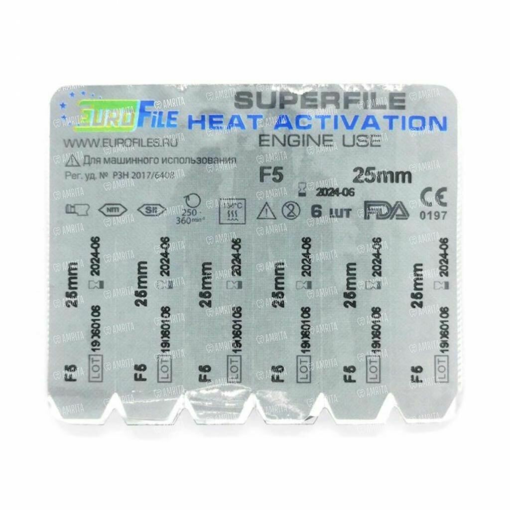 Файлы машинные Eurofile SuperFile Heat Activation, для препарирования каналов, 25 мм, №F5, никель-титан, 6 шт
