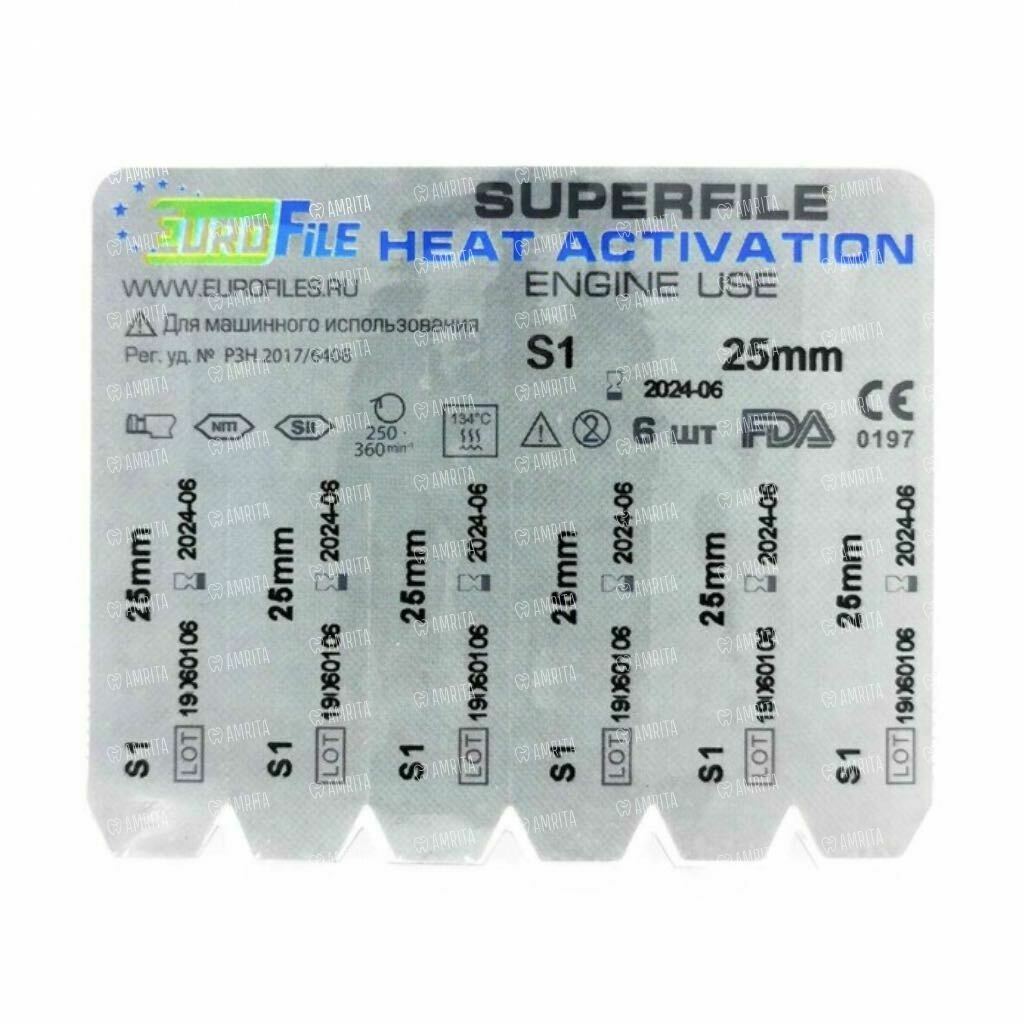 Файлы машинные Eurofile SuperFile Heat Activation, для препарирования каналов, 25 мм, №S1, никель-титан, 6 шт