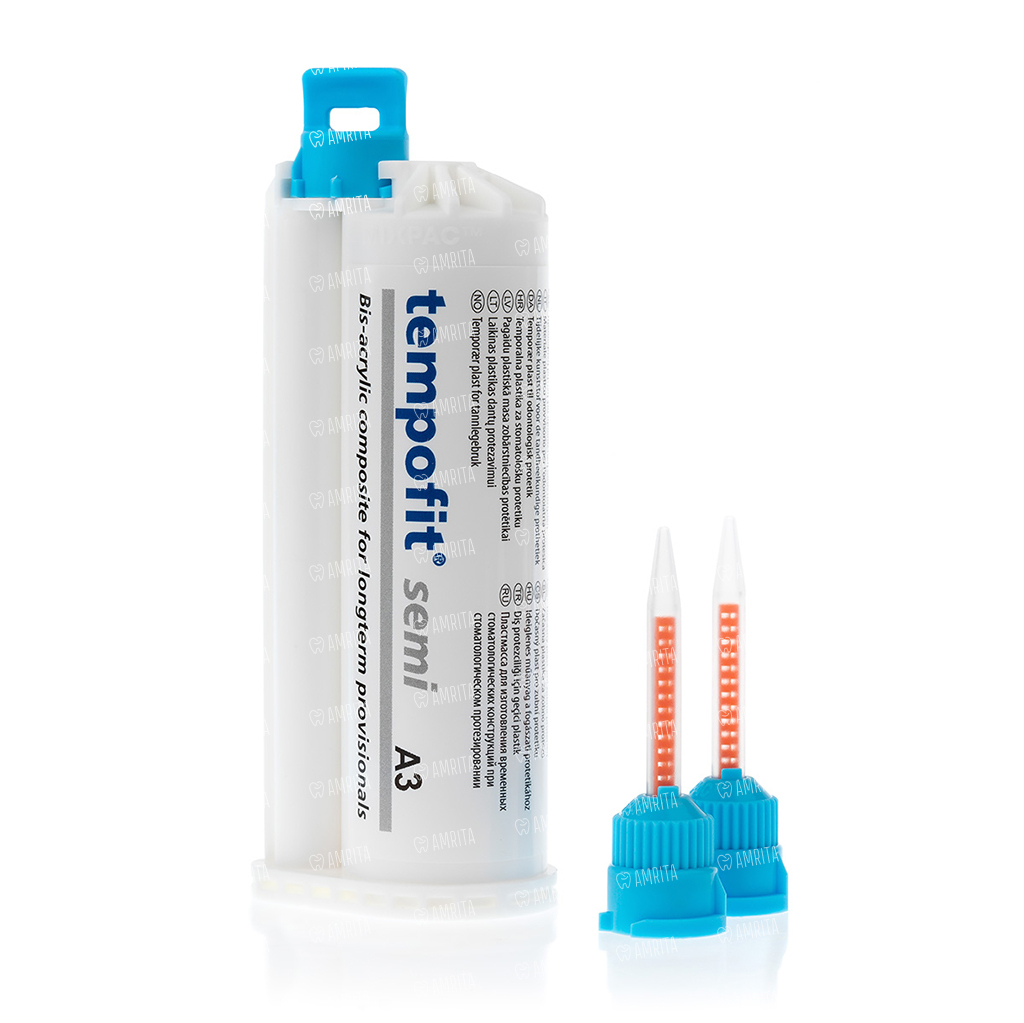 Tempofit semi 10:1 — высокоэффективный бис-акриловый композит для изготовления высококачественных временных реставраций длительного ношения, самоотверждаемый.