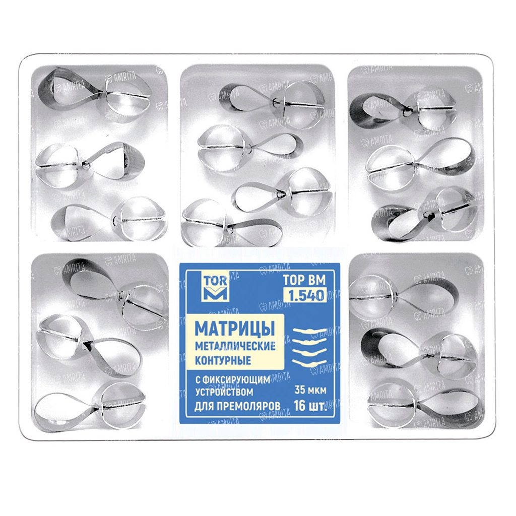 Матрицы металлические, контурные, с фиксирующим устройством, для премоляров, 35 мкм, 16 шт