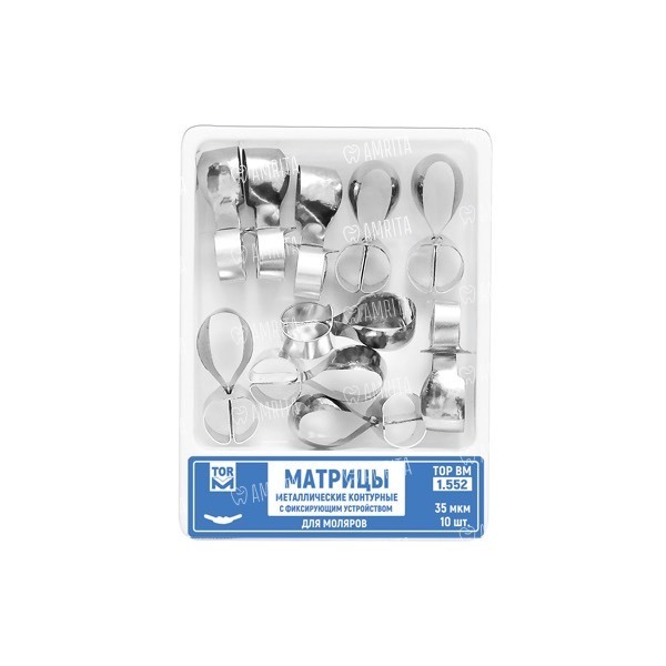Матрицы металлические, контурные, с фиксирующим устройством, для моляров, 35 мкм, 16 шт
