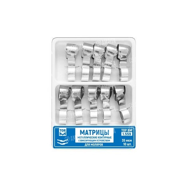 Матрицы металлические, контурные, с фиксатором, для моляров, форма 2, билатеральные, 35 мкм, 10 шт