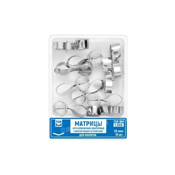 Матрицы металлические, контурные, с фиксирующим устройством, для моляров, 35 мкм, 16 шт