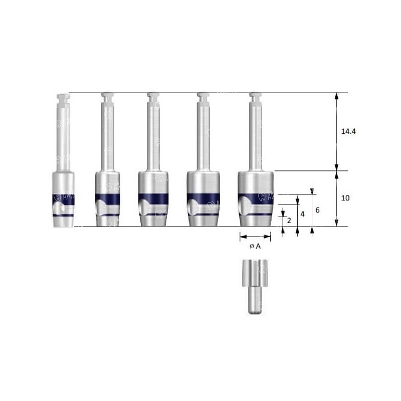 Мукотомы смоделированы для использования в наконечнике, предназначены для удаления мягкой ткани из гребня перед подготовкой остеотомии в безлоскутной хирургической процедуре.